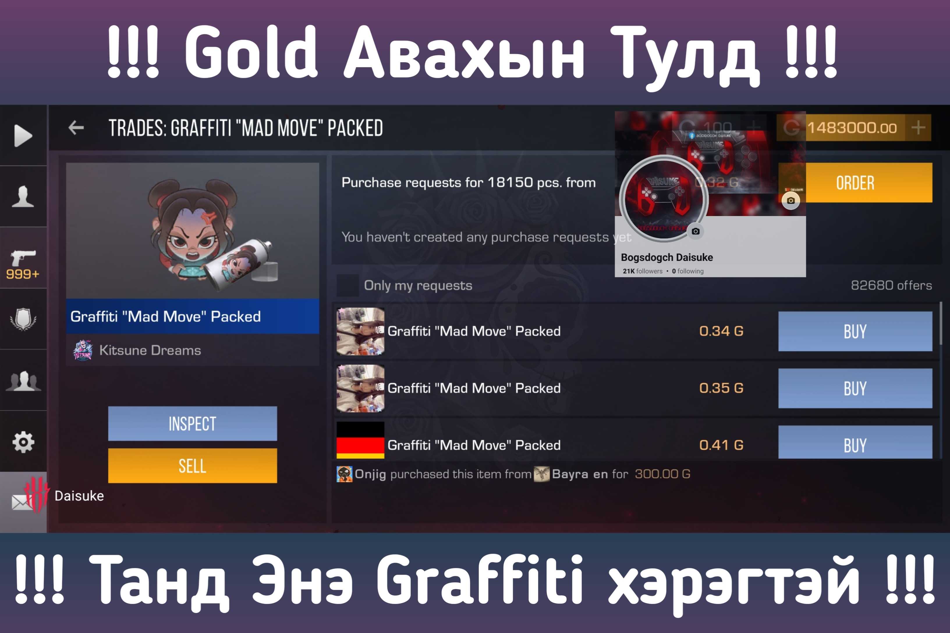 Маркет Gold-р авхын тулд зураг дээрх Mad Move нэртэй graffiti авсан байх ёстой хэрвээ авч мэдэхгүй байвал доорхи видео заавар товч дээр дарж бичлэг үзээрэй. Gold орох хугацаа 5-20мин. Website өглөөний 09:00 - 02:00 цагийн хооронд ажиллана.